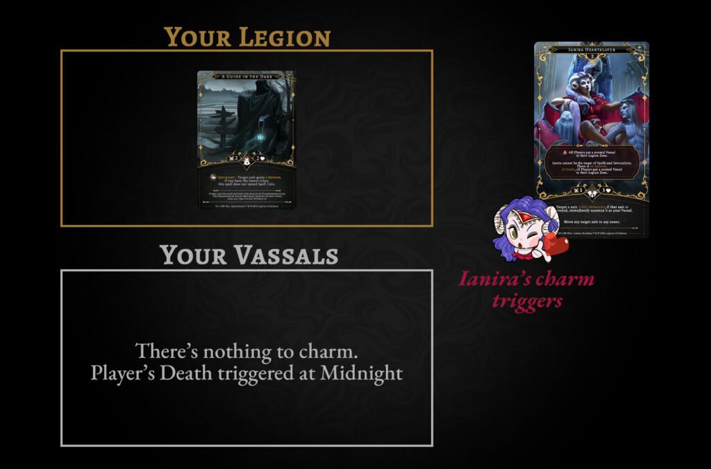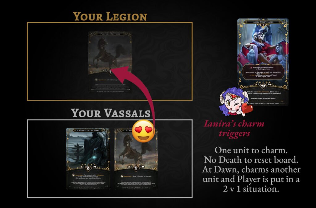 The best example I could give is Ianira Heartslaver. Ianira’s Calamity flips the state of the board. Players who have a stronger board are now in big trouble. Players with a struggling board will find themselves in a favourable position. The comeback became very obvious in the following Magna Cycle when the clause ‘Skip the Ambush’ takes place. Players with a struggling board will have the opportunity to deal direct damage to Ianira, obtaining as many points as they could. With no Legion present, struggling Players also have the opportunity to play Spells against stronger Players. This one cycle of freedom gave weaker Players opportunity to politic, opening up chances to make alliances.