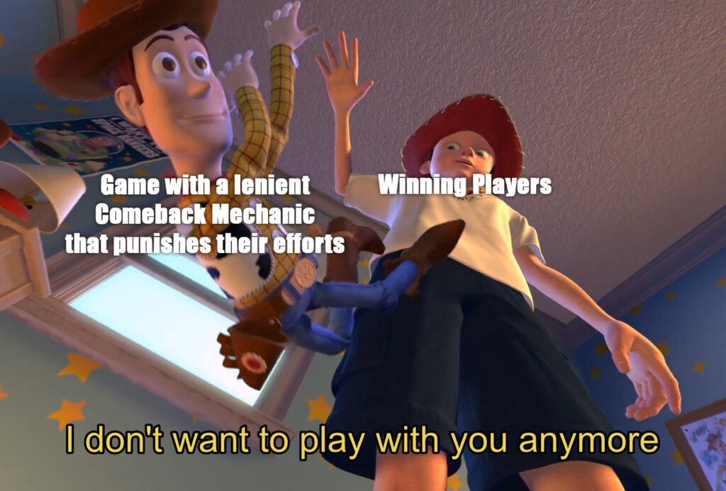 The three scenarios give you a brief example on how the effect of certain comeback mechanics can affect everyone in a bad way. However, to be the strongest Player will affect you in a worse way.